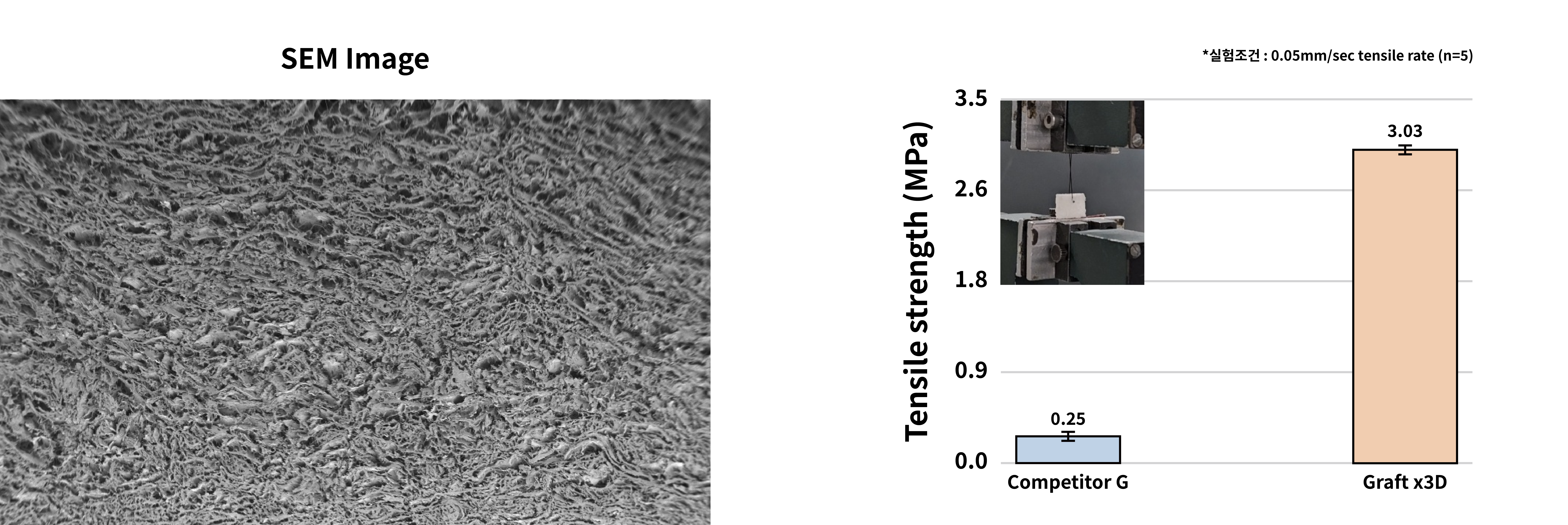 - 다공성 스폰지 구조로 빠른 혈관화를 통해 상피화 유도
