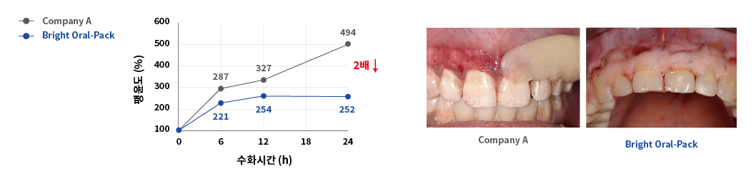 낮은 수팽윤도 : 수화로 인한 팽창이 적어 환자 불편감 최소화
